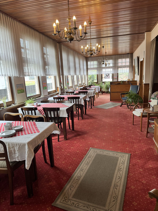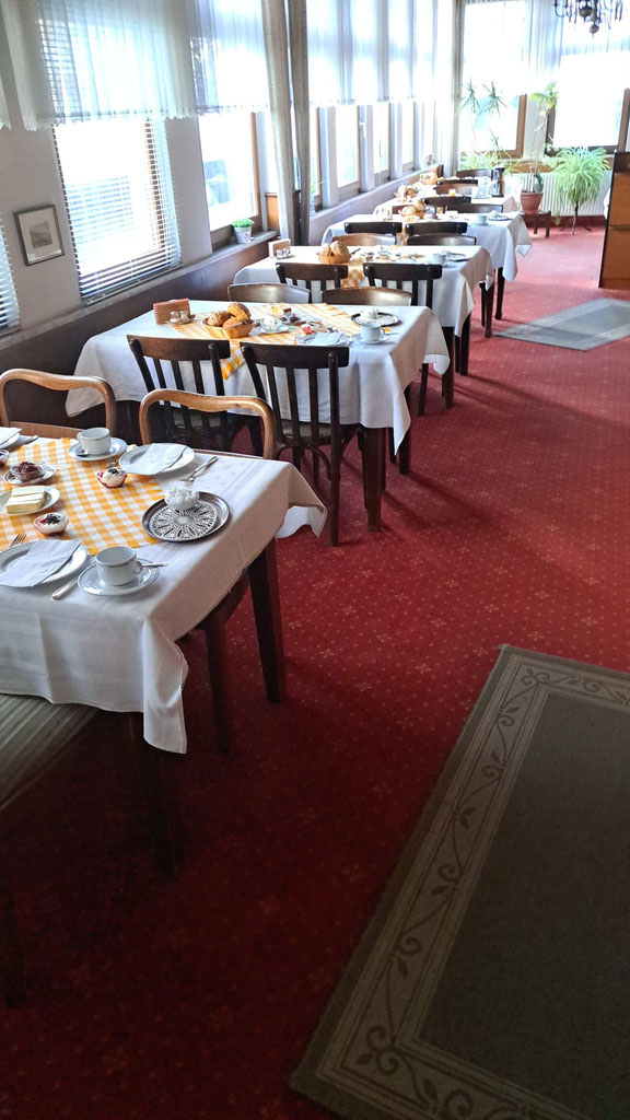 Ein lichtdurchfluteter Frühstücksraum lädt all morgendlich zum Frühstück ein.